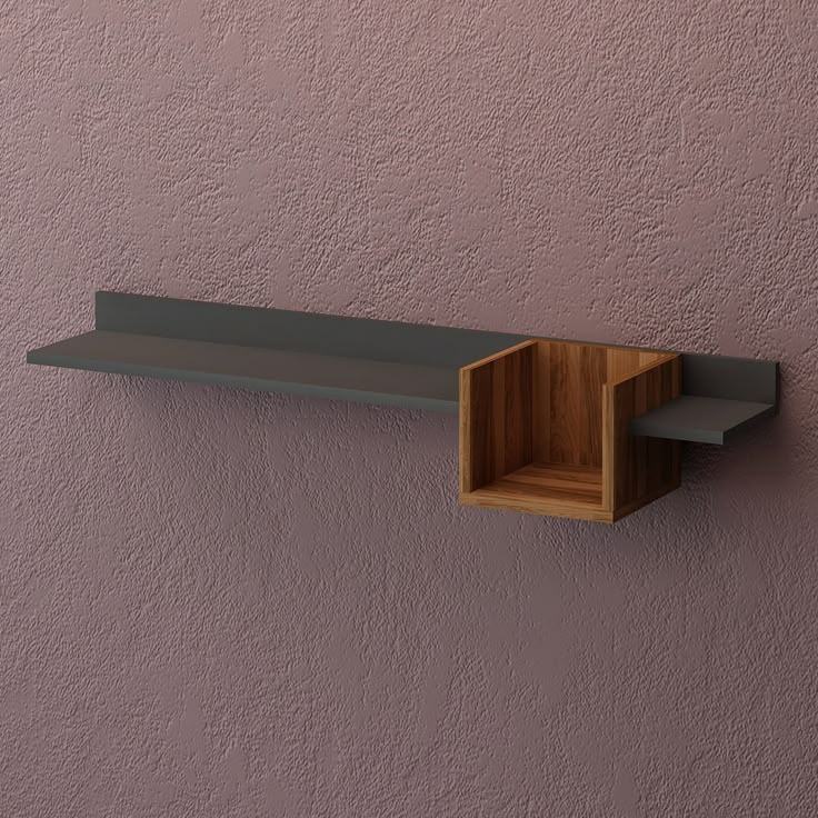 The Air Shelf features a striking asymmetrical design, merging a sleek charcoal ledge with a warm oak-finished display cubby. It’s a minimalist statement piece perfect for contemporary hallways or living rooms.