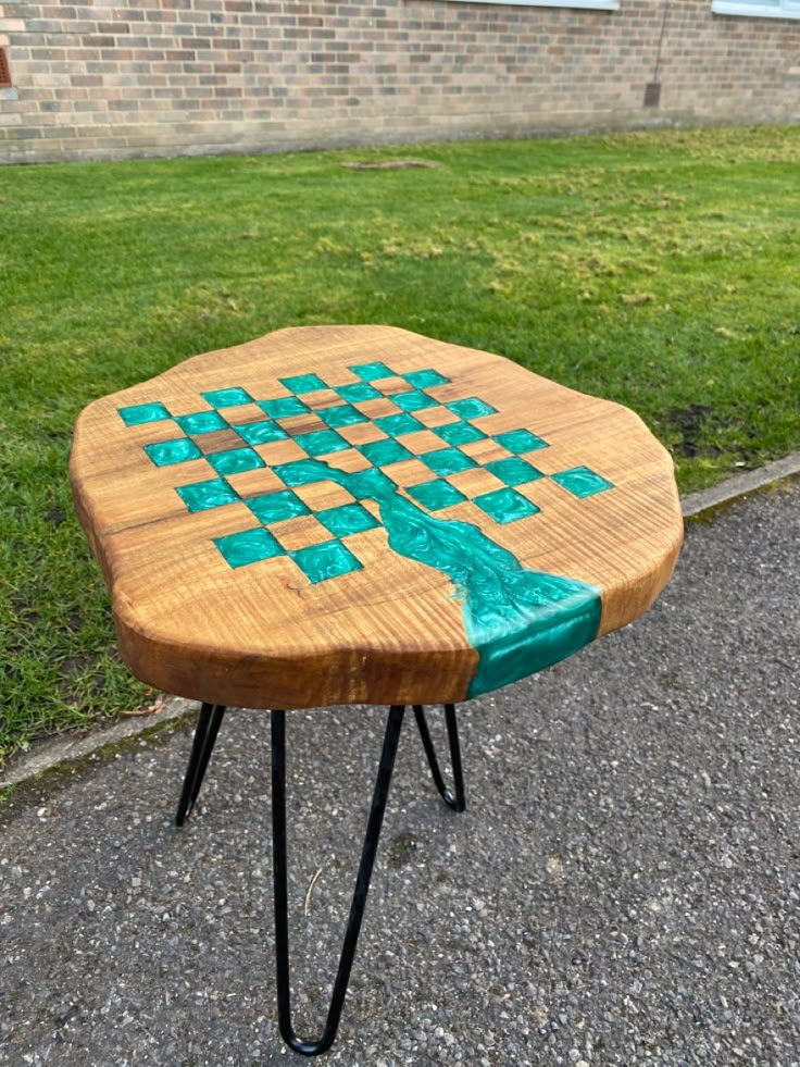 Earth Gem is a playful fusion of strategy and nature. This handcrafted side table features a solid timber slab with a precision-carved checkerboard pattern, filled with vibrant, swirling emerald epoxy resin that flows into a signature “river” edge.