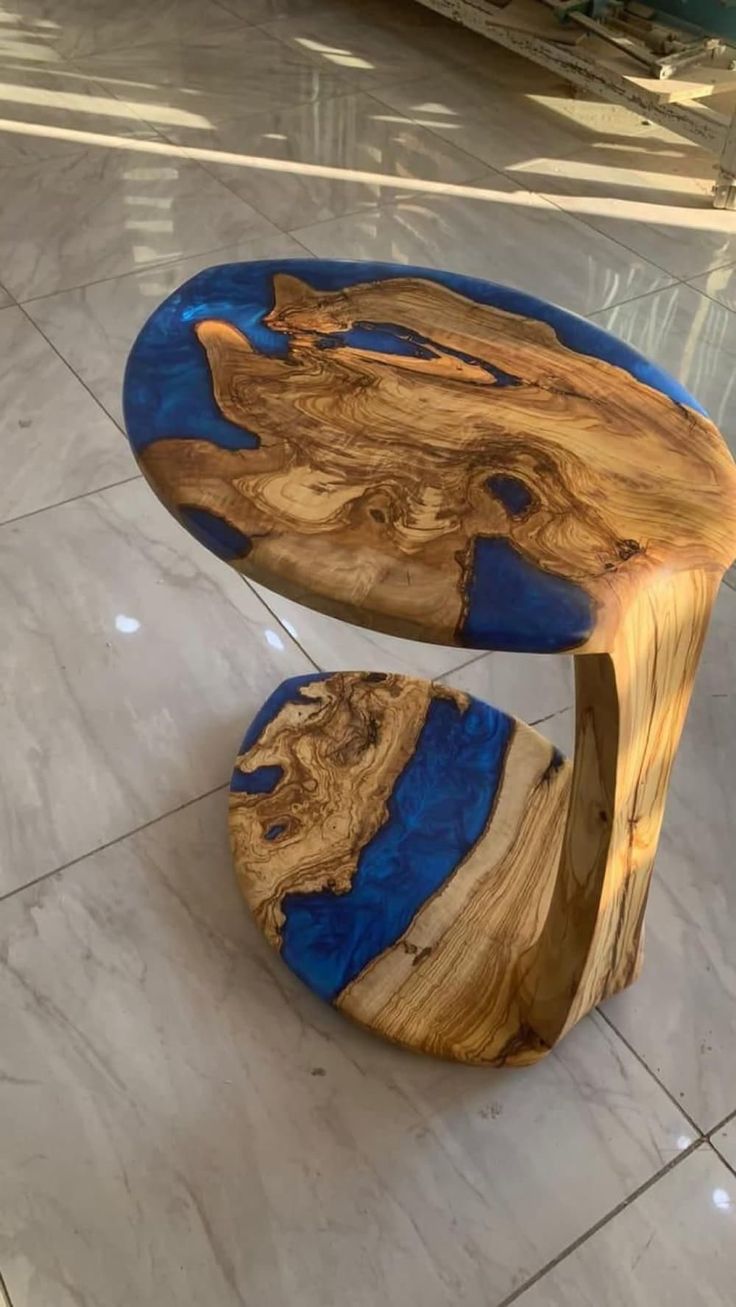 Ebony Stream is a masterpiece of fluid functionality. This handcrafted C-shaped side table features a continuous timber grain that transitions seamlessly into an ethereal, electric-blue epoxy river, creating a stunning “floating” cantilevered silhouette.