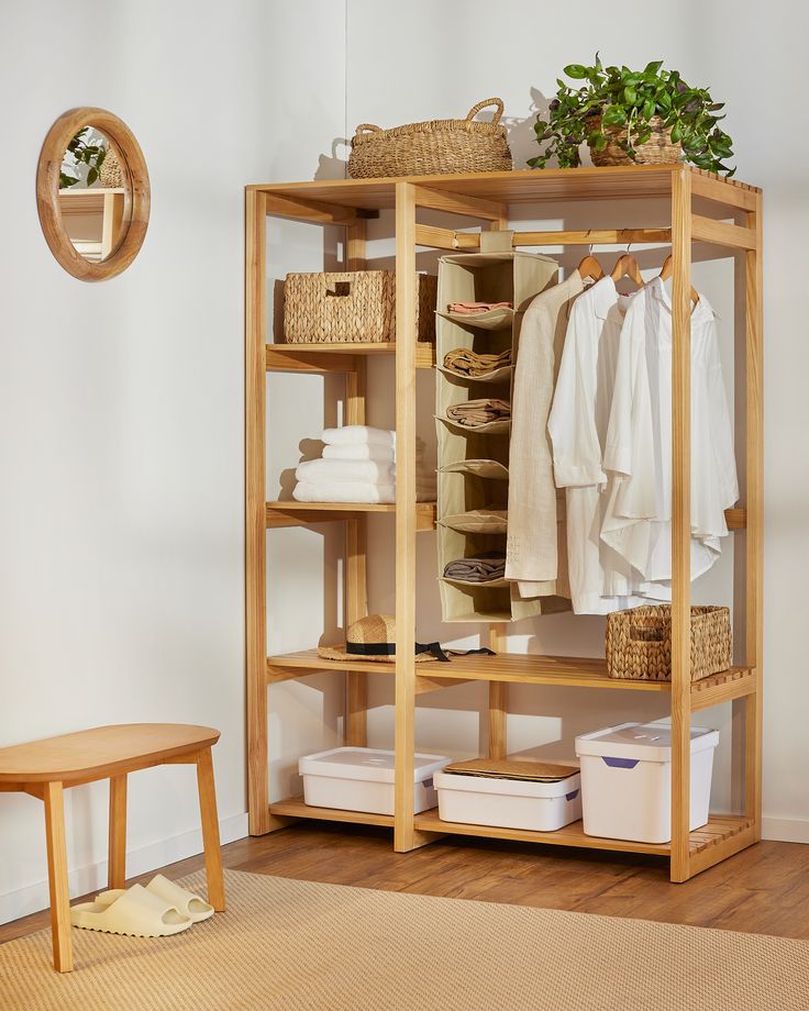 Slatted Architectural Design: Features a breathable slatted construction that ensures excellent airflow for garments while adding a rustic, textured aesthetic to your space.