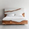 The Heritage Teak is a masterful blend of timeless tradition and modern luxury. This bedframe features golden-hued teak wood seamlessly merged with a bold, sapphire-toned epoxy resin inlay. The handcrafted live-edge design preserves the timber’s organic spirit, creating a serene, nature-inspired centerpiece for any high-end bedroom.