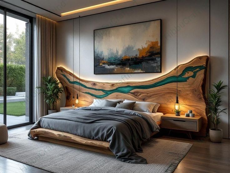 Sculptural Live-Edge Headboard: Features the authentic, untamed edges of the wood, making every individual bedframe a unique, one-of-a-kind work of functional art.