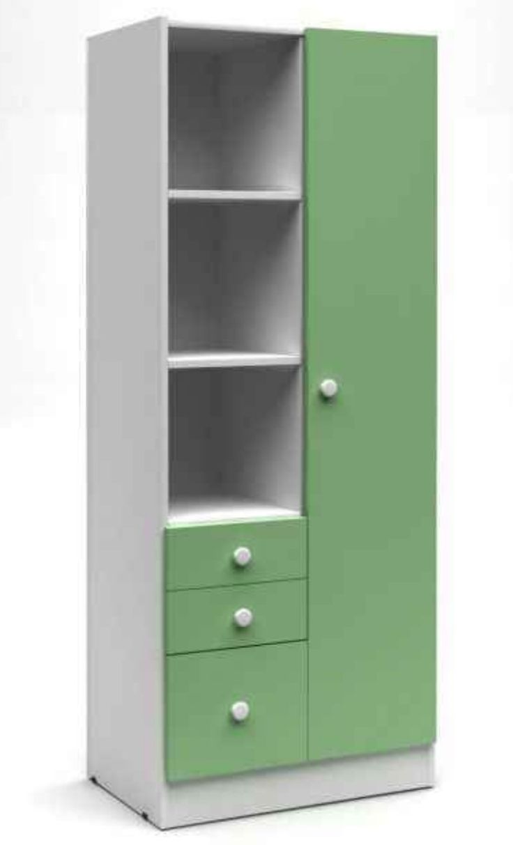 Luxe Haven is a playful, modern wardrobe featuring a crisp white frame and refreshing sage green accents. Its compact, cheerful design is a perfect storage addition for children’s rooms or eclectic modern spaces.
