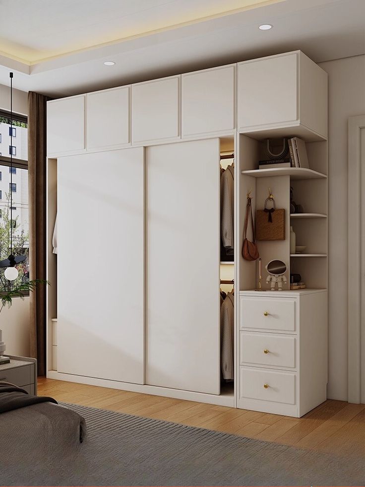Dual-Zone Sliding Doors: Outfitted with a large-scale sliding track system that provides effortless access to the primary hanging sections without requiring additional room for door swings.