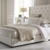 Inject sophisticated, modern glamour into your bedroom with the Studio Rest Upholstered Bed. This striking platform bed features a dramatic, curved headboard fully adorned with deep button-tufting, creating a plush, diamond-patterned look that is both luxurious and inviting. Upholstered in crisp white faux leather, the bed’s clean lines and sleek profile embody contemporary elegance. The robust frame sits atop low-profile polished feet, adding a subtle metallic touch. The Studio Rest Bed is a stunning focal point, offering an atmosphere of high-end, cosmopolitan style perfect for making a bold design statement.
