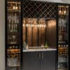 Elevate your entertaining with this sophisticated, built-in wet bar cabinet. Featuring a luxurious marble countertop and integrated LED strip lighting for a warm, inviting glow, it’s designed for the modern connoisseur. Key features include under-cabinet stemware racks, ample open shelving for liquor, and a base unit with a wine chiller rack and illuminated, glass-door refrigerators for organized storage and display. Perfect for a premium home bar setup.